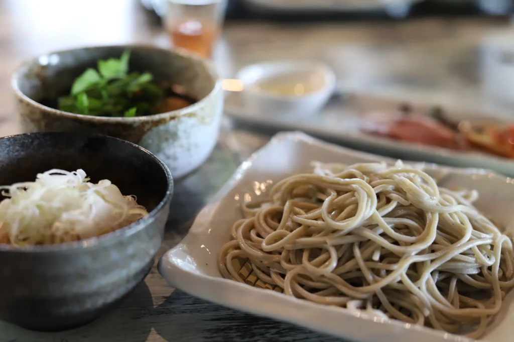 森林セラピーでリフレッシュした後は、お腹を満たすために「本格十割そば きふね」へ向かいましょう。ここでは、新鮮なそば粉を使用した香り高い十割そばを楽しむことができます。シンプルながらも深い味わいのそばは、旅の疲れを癒してくれること間違いなしです。風情ある店内で、ゆったりとした時間を過ごしながら、うきは市の味覚を堪能してください。