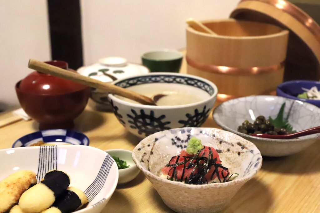 Waraku also offers exquisite dining options featuring fresh, locally sourced ingredients. Dinner includes a traditional kaiseki meal, highlighting Shizuoka’s fresh seafood and vegetables, which pleases both the eyes and the palate. For breakfast, you can enjoy a balanced selection of small dishes, including local specialties like Shizuoka-style oden and tororo.