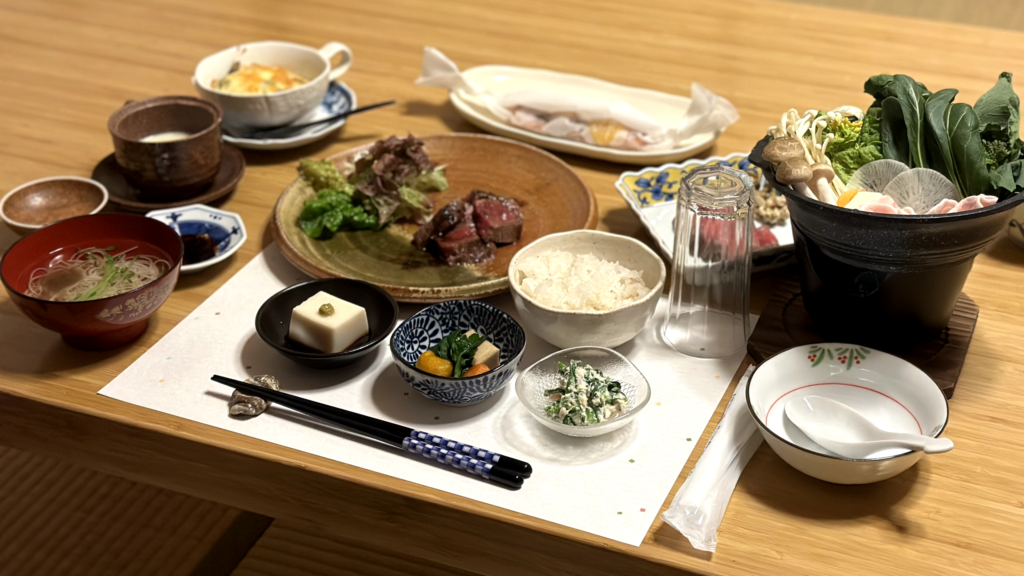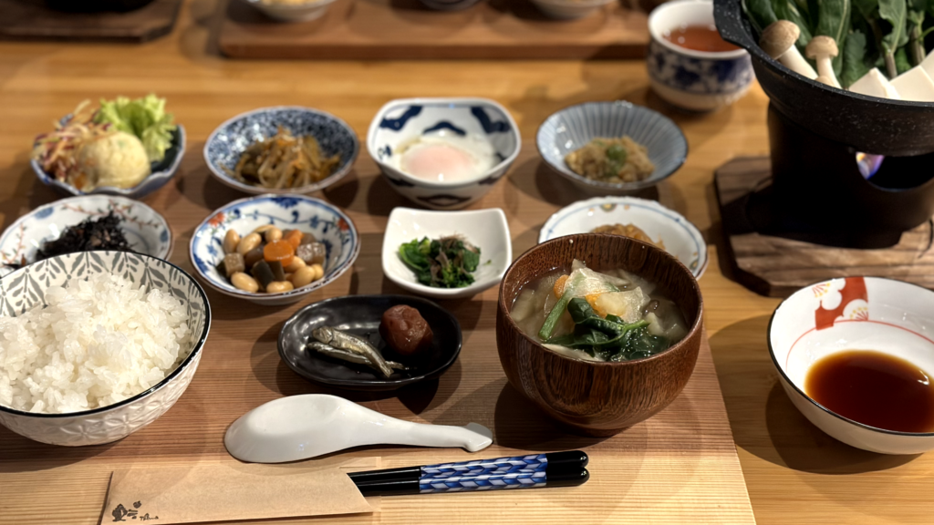 朝ごはんにはたくさんの小鉢が用意され、ごはんを何倍もおかわりしてしまいそう。もちろん朝食のメニューも地元のお野菜をふんだんに使っており、一日の始まりを豊かに彩ります。