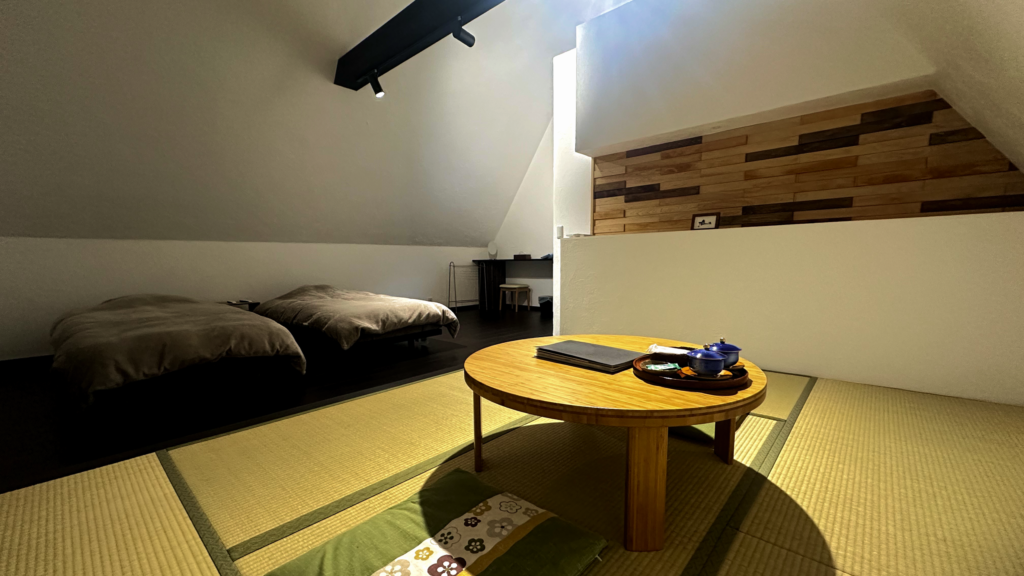 1日2組限定のお宿のため、お客様ひとりひとりに合わせた癒しを提供してくれる空間で、お部屋は和洋室が融合した落ち着いた空間が特徴です。壁や天井は漆喰で仕上げるなど、リノベーションされた古民家の趣を残しつつ、Tempurのベッドが深い眠りを誘います。お部屋貸しの縁(Enishi)と1棟貸しの鳳(Hou)の2タイプからお客様ご自身の用途に合わせてお選びいただきます。