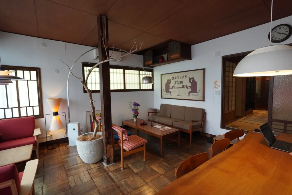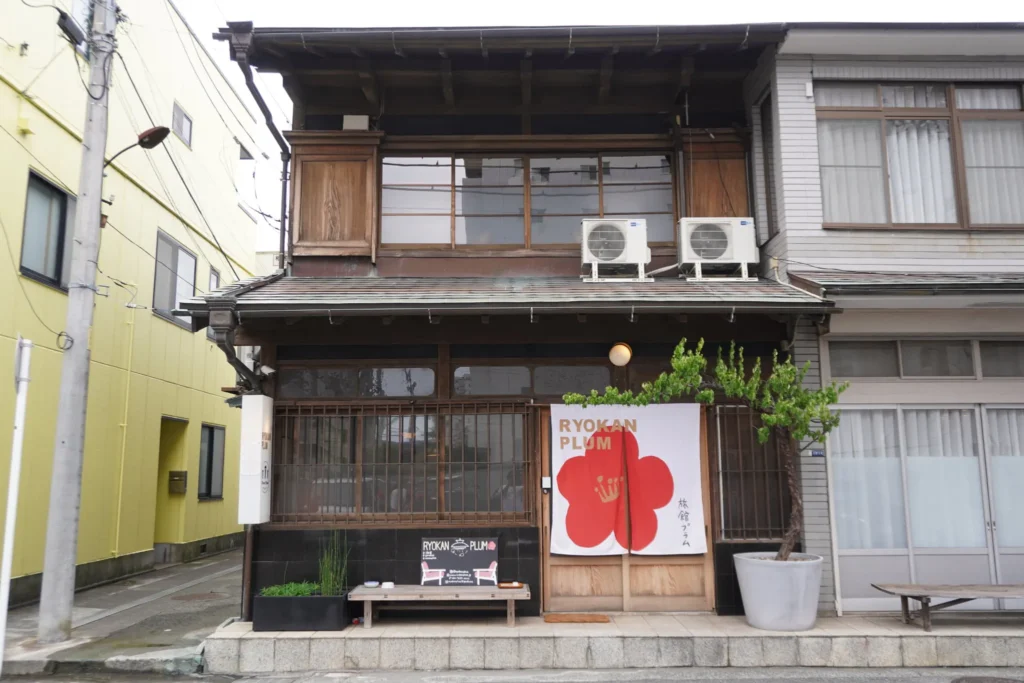 RYOKAN PLUMは小田原駅から徒歩8分という好立地に位置し、小田原の歴史を感じる宿泊体験ができる旅館です。1922年築の建物で築100年以上の古民家をリニューアルしたこの宿泊施設は、小田原の魅力をより多くの人に伝えたいという想いから2021年に再オープンしました。古き良き建物の魅力はそのまま残しながらも、今の価値観にアップデートするために、家具や照明はあえてヴィンテージもので揃え、レトロな雰囲気を醸し出しています。
