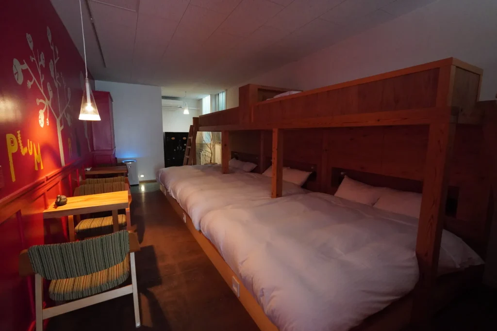 RYOKAN PLUMでは、和室と洋室の両方のスタイルのお部屋が用意されており、人数は最大8名様まで同じお部屋にお泊りいただくことができます。和室は伝統的な日本の雰囲気を楽しめる空間になっており、畳の上にごろんと寝転ぶという和室ならではの落ち着いたくつろぎを感じることができます。洋室はモダンで洗練されたデザインが施されており、こだわりのインテリアがリラックスできる空間を演出しています。