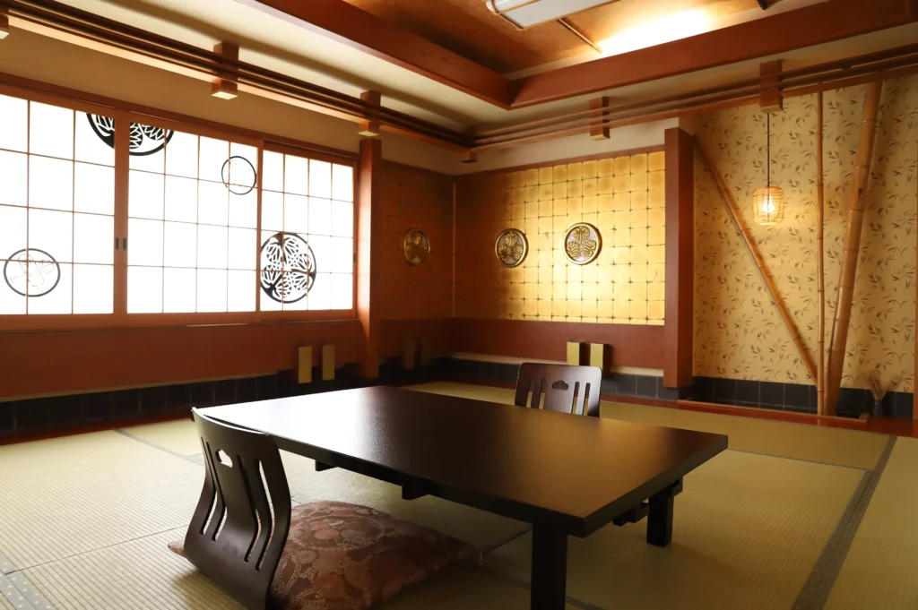 季節の移ろいに合わせて変わる掛け軸や生け花で日本の四季を感じることができ、そっと心を癒してくれます。お部屋の雰囲気も様々で、中には葵の紋章に彩られたお部屋もあります。どのお部屋を選んでいただいても、プライベートな時間を心からくつろいでいただけるような造りとなっています。日々の喧騒を離れ、心温まるおもてなしとともに贅沢なお時間をお過ごしください。