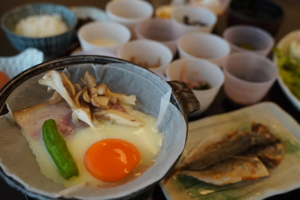 また、朝食には、地元食材にこだわったメニューが用意されています。千葉県が誇るブランドお米「粒すけ」によくあう御惣菜のハーフビュッフェバイキング(日によっては和食膳となることがあります。)になっており、朝から美味しい食事をとることでその日一日活動的に過ごせます。