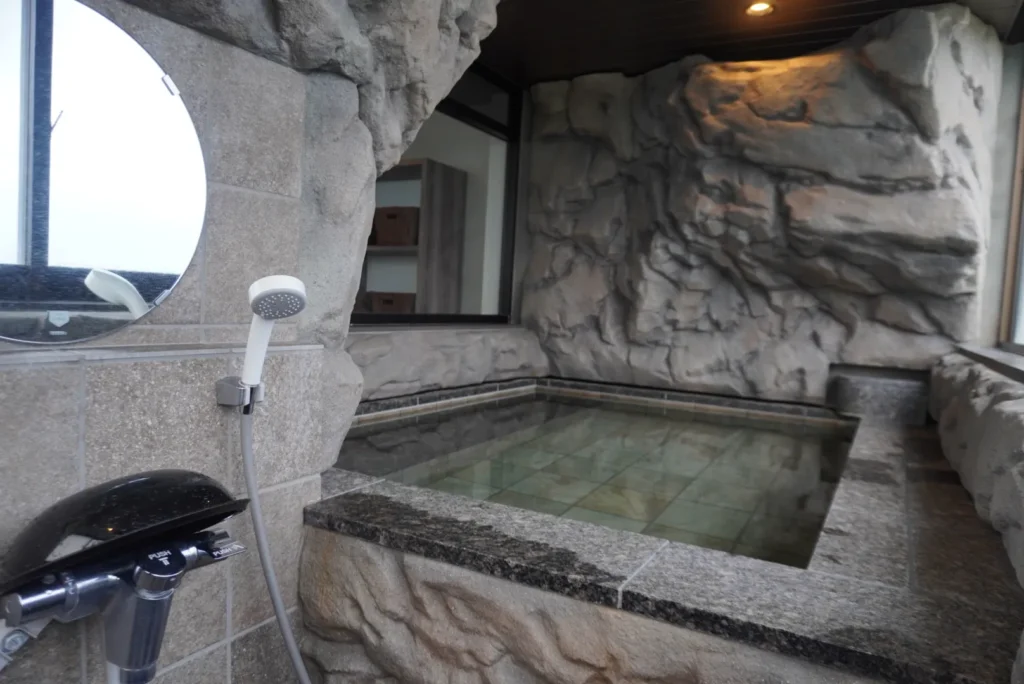 総檜造りの和風庭園大浴場、御影石造りの洋風庭園大浴場、海を一望できる展望風呂も和風・洋風で完備、また2つある貸切風呂は宿泊者は1回無料で利用することができます。