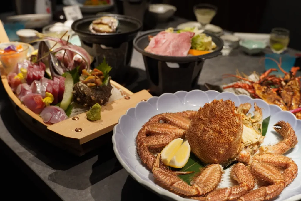 夢みさきでは、地元の新鮮な食材をふんだんに使用した料理が楽しめます。特に、海の幸を活かした料理は絶品で、季節ごとに変わるメニューが訪れるたびに新しい発見を提供してくれます。地元の漁港から直送される新鮮な地魚だけでなく、全国から独自のルートで仕入れた特選食材を、その時一番美味しい状態でお客様にご提供しています。