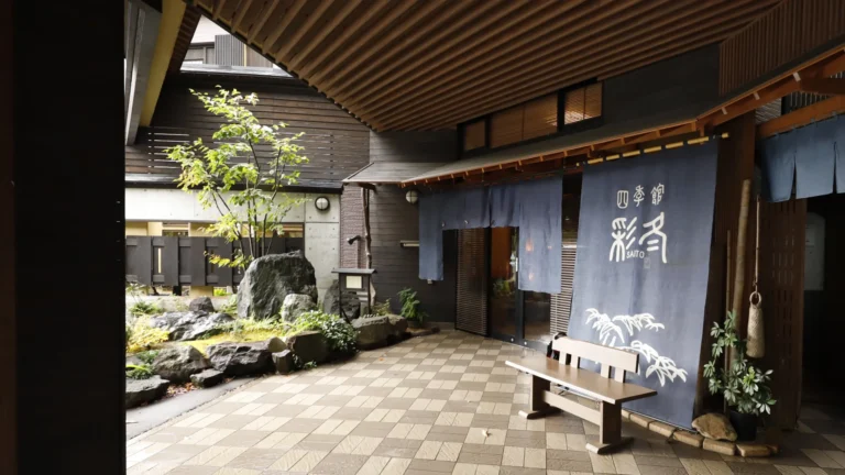 Shikikan Saito’s rooms are designed to blend modern Japanese aesthetics with the natural beauty outside. Each room is distinct, featuring calming tones and large windows that showcase the ever-changing seasonal scenery, such as vibrant autumn foliage or serene winter snow.