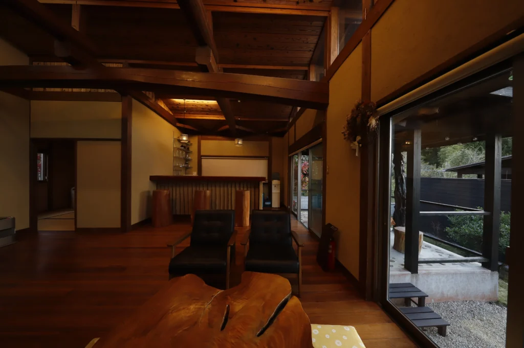 それぞれゲストが心地よく過ごせるような空間が整っています。田主丸町の宝である自然の美しさを感じられるように大きな窓を設けており、どのお部屋からも日本庭園を眺めることができます。お庭やバルコニーでは、外の空気を感じながらのんびりと過ごすことができます。夜には星空を眺めながら、静かな時間を楽しむことができるのも魅力の一つです。