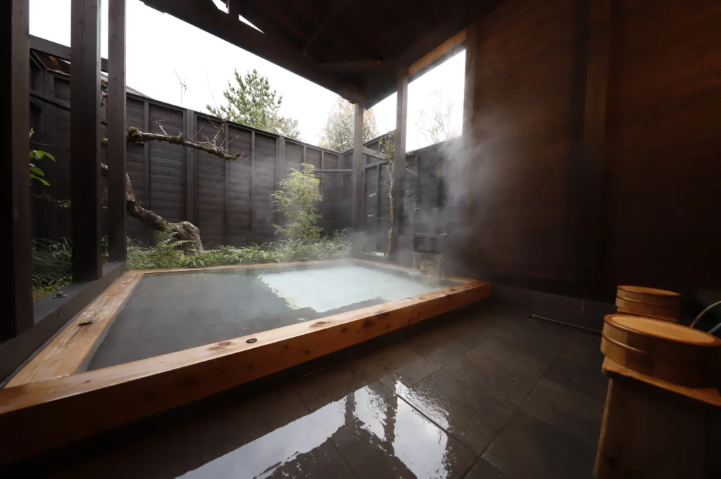 心身ともにリフレッシュできるよう、宿泊者専用の庭園露天風呂を提供しています。各お部屋にも浴室やシャワールームがありますが、庭園に囲まれた開放感のある露天風呂に浸かれば、一日の疲れも吹き飛びます。