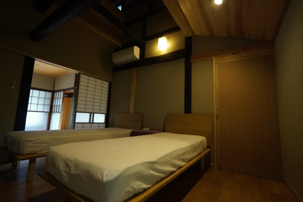 お部屋は、築100年以上の風格を感じさせる和の趣を大切にしながらも、快適に過ごせるように考えられた設計となっております。梁などはそのままに、内装はモダンな雰囲気に仕上げられています。もちろん水回りもリノベーションされているので、不自由さは一切感じることなく快適に過ごせる空間が広がっています。
