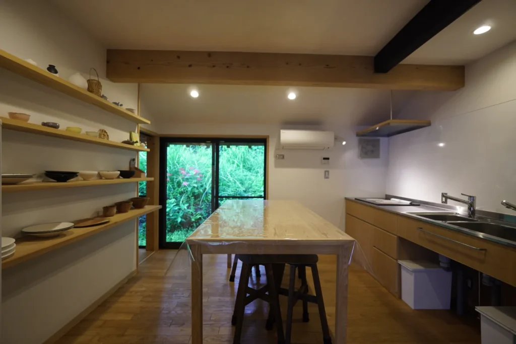 リビングには、自由に利用できる食器が用意されているのですが、これらの食器はこの地域に住まわれ、国内外で活躍されている陶芸作家さんの作品だとか。地元ならではの温かみも感じられ、贅沢な空間が広がっています。