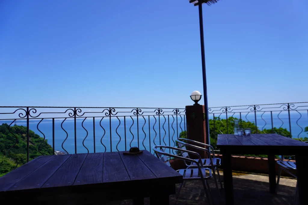 小田原市江之浦の豊かな自然に囲まれたオープンカフェです。緑豊かな山々を背に、目の前に広がる相模湾とサドルバック牧場を楽しむことができます。