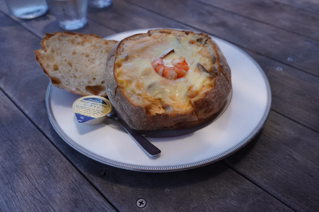 特にパンケースに魚介グラタンが入ったパングラタンは、お客様からの人気も高いメニューです。まわりはサクサクとした食感、中のパンは柔らかく、グラタンがしみ込んだパンも最高の味わいです。お食事ではなく、カフェのご利用もおすすめです。コーヒーもしくは紅茶にお好きなケーキセットにして、至福のひとときを味わってください。いずれかのお飲みものには生花が添えられており、その心遣いにも癒されます。