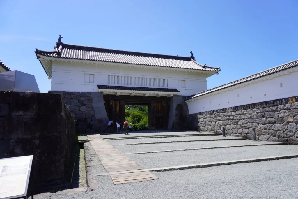 城内へはいくつかの門をくぐって入ることができますが、銅門(あかがねもん)は二の丸の正門にあたります。渡櫓門(わたりやぐらもん)にはその名の由来となった銅板の装飾が施されており、一見の価値ありです。