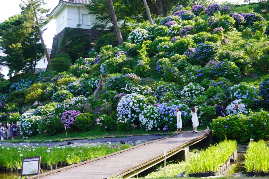 季節ごとに開催されるイベントやライトアップも魅力のひとつです。桜の季節には300本以上のソメイヨシノが咲き乱れ、お城と一緒にお花見が楽しめます。また、梅雨の時期には城内に彩り豊かな紫陽花が咲き、多くの観光客でにぎわいます。