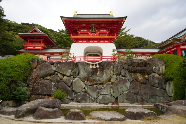 赤間神宮は、山口県下関市にある歴史的な神社で、特に源平合戦に関連する重要な場所として知られています。鎌倉時代に創建され、境内には赤間神宮の象徴ともいえる美しい本殿が残っており、その荘厳な姿は多くの参拝者を魅了しています。