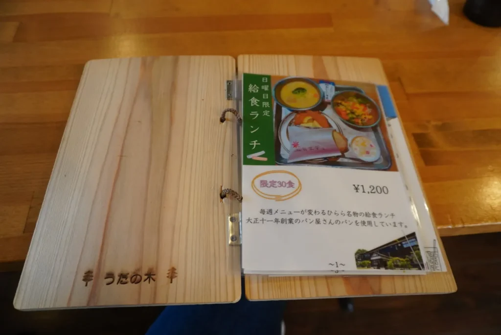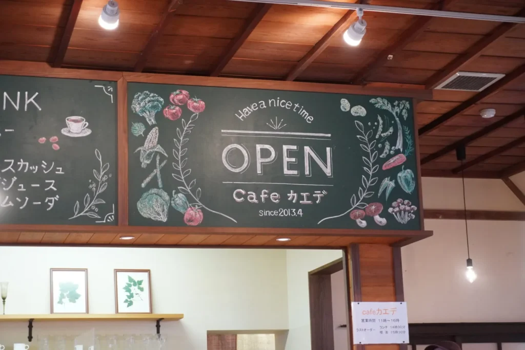 Cafe Kaede is a World Maple Park that reuses the old Uta Elementary School building. The park features 1,200 species and 3,000 maple trees from around the world. At this café, you can enjoy maple-themed treats like maple nut waffles, and nostalgic school lunches on Sunday.