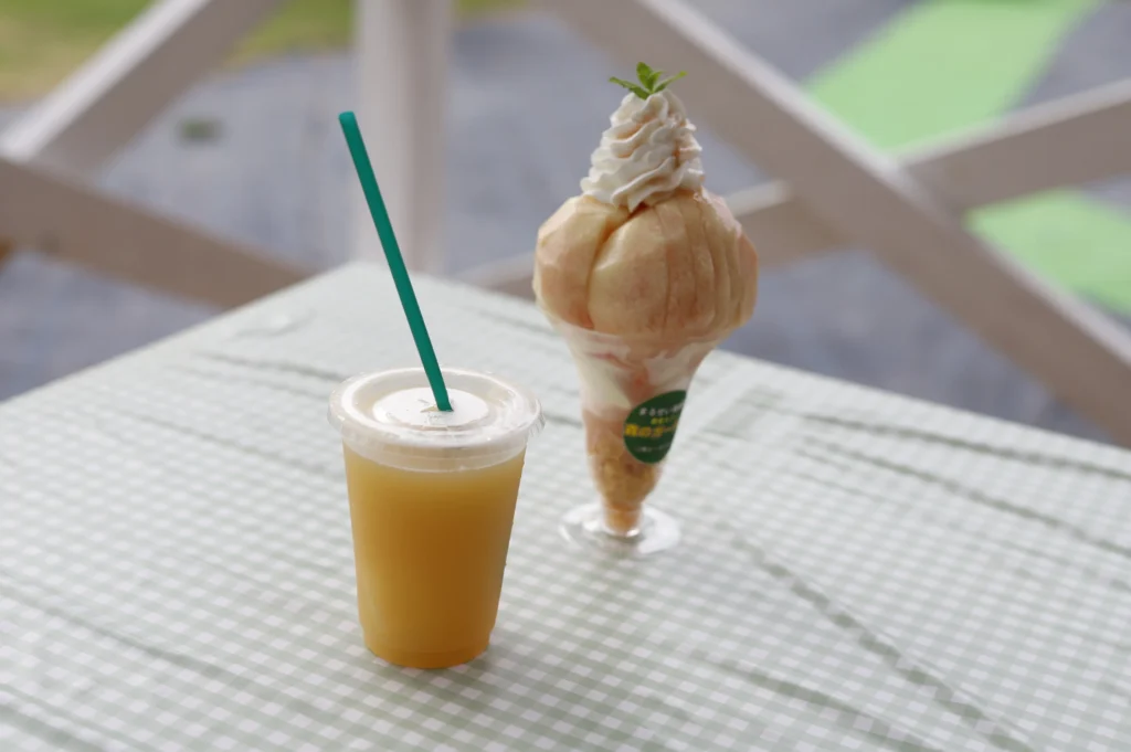 収穫後は、果樹園内の休憩スペースで、収穫した果物をその場で味わうことができます。新鮮な果物をそのまま食べる贅沢なひとときは、まるせい果樹園ならではの楽しみです。近くにある農家直営のカフェ「森のガーデン」ではとれたてのフルーツを使ったスイーツも楽しむことができます。