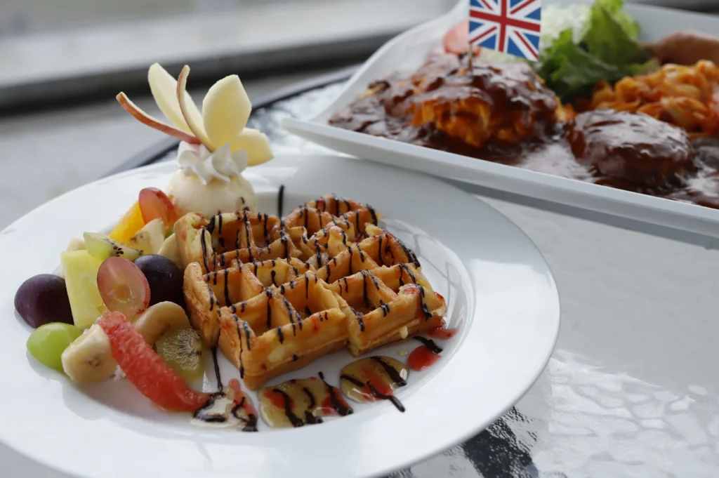 展望・星屑レストランガイアでは、素晴らしい景色を楽しみながら、特別な食事体験を味わうことができます。まず、訪れた際には、レストランの大きな窓から見える甲府盆地の美しい景色を堪能しましょう。特に夕暮れ時には、空がオレンジ色に染まり、幻想的な雰囲気が漂います。