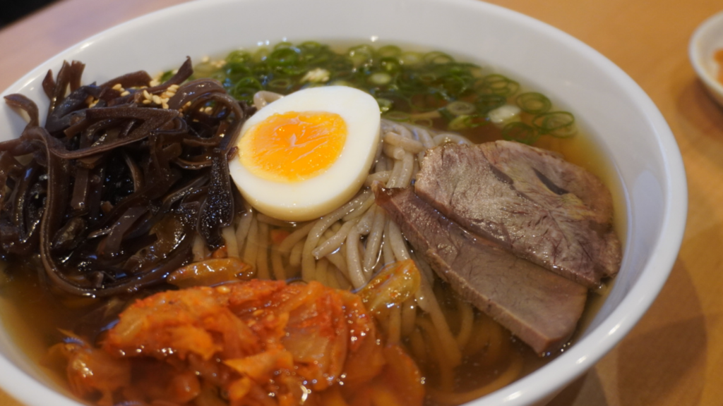 冷麺を彩る具材もこだわりがあり、国産牛すね肉を丁寧に煮込んだ特性チャーシューは芳醇な味わいが楽しめます。程よい酸味が特徴の自家製キムチも、冷麺と絶妙にマッチします。