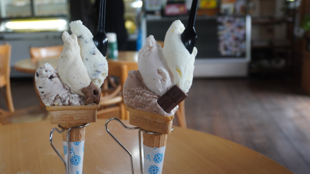 Here, you’re encouraged to try the seasonal flavors that change throughout the year. For those who can’t decide and still want to savor the classic and popular milk flavor, double or triple scoops are available. The shop also features a spacious and cozy café area, perfect for relaxing with friends or family. Surrounded by warm wooden interiors, you can enjoy delicious gelato while unwinding in comfort.