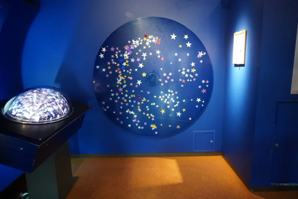 賢治の学校の中は、「ファンタジックホール」、「宇宙」、「天空」、「大地」、「水」の5つのゾーンに分かれています。また、ログハウス展示施設「賢治の教室」では、童話に登場する「植物」「動物」「星」「鳥」「石」に関する展示を行っています。(花巻市のサイトより抜粋)