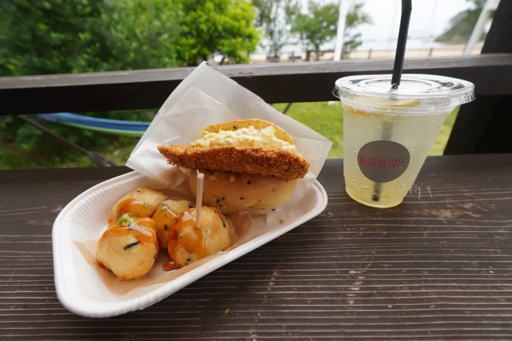 This café boasts a panoramic view of the sea, where guests can enjoy the refreshing sea breeze as they relax. The menu is diverse, with popular items like fish and chips made from local white fish, hijiki nuggets, and handmade shakes and lemonades made with Oshima’s famous Amatsu citrus fruit. Another favorite is the freshly squeezed Amatsu gelato, offering a sweet, tangy treat perfect for the warmer months.