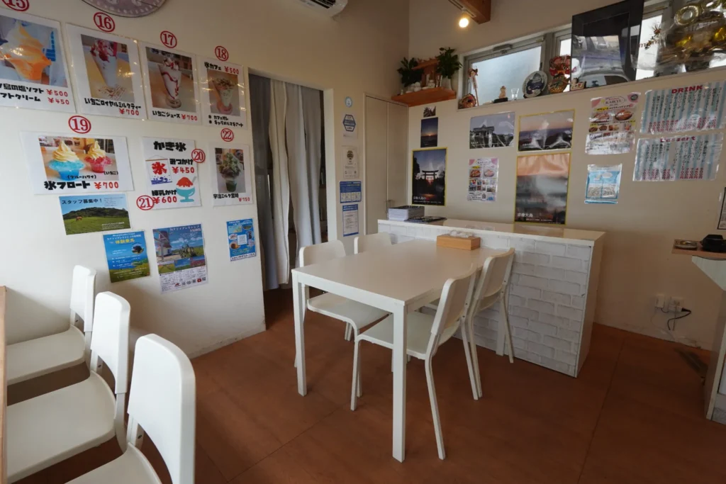 KAIKYUは、大島の海を眺めながら楽しむことができるアットホームなカフェです。特に推薦されるのは、季節によって変わるジューシーなホットサンドで、その日に水揚げされた新鮮な魚介類を使用しています。地元の食材にこだわった料理は、地域の豊かな味覚を堪能する絶好の機会です