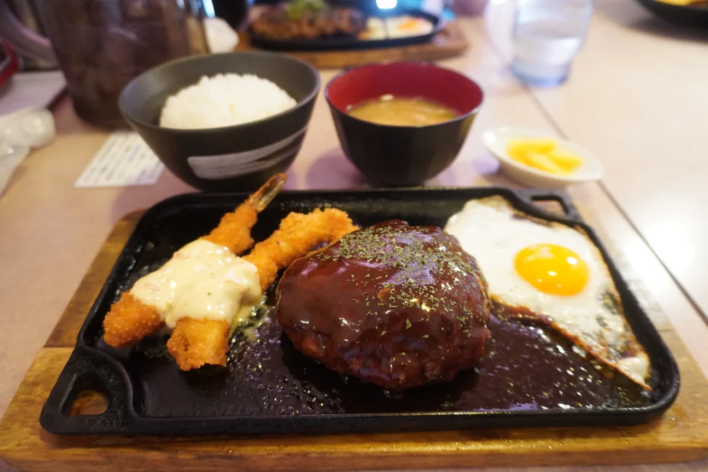 チキンカツやエビフライを中心とした定食も充実しており、特にチキンカツはサクサクとした衣とジューシーな肉の組み合わせが好評です。